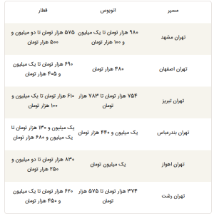 مقایسه قیمت بلیط قطار و اتوبوس برای نوروز ۱۴۰۵