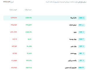 قیمت فروش حواله یورو نیز ۱۴۷ هزار و ۳۷ تومان و قیمت خرید حواله آن ۱۴۵ هزار و ۷۱۴ تومان است.