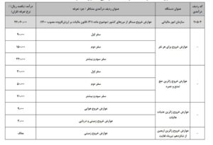 همچنین، طبق این لایحه، عوارض خروج از کشور برای زائران حج تمتع و عمره برای سفر اول ۳ میلیون تومان، سفر دوم ۵ میلیون تومان و سفر سوم و بیشتر ۷ میلیون تومان خواهد بود.