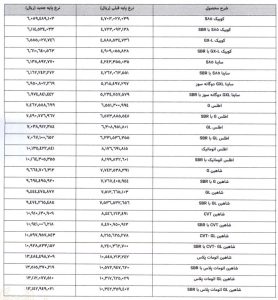 شرکت سایپا لیست قیمت جدید کارخانه ای (نرخ پایه) کلیه محصولات تولیدی خود را ویژه بهمن ماه اعلام کرد.